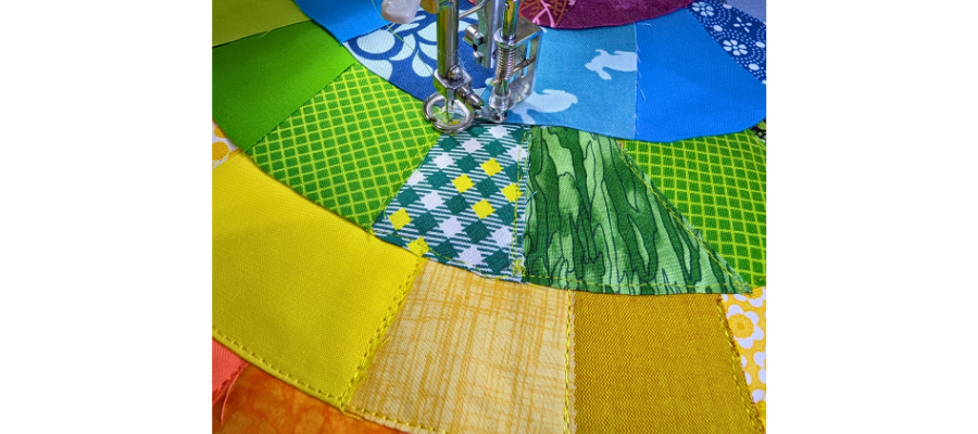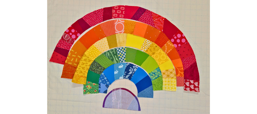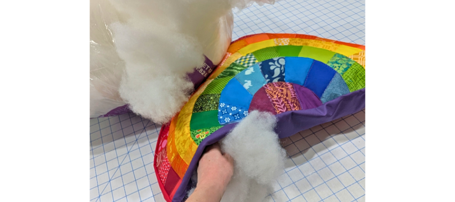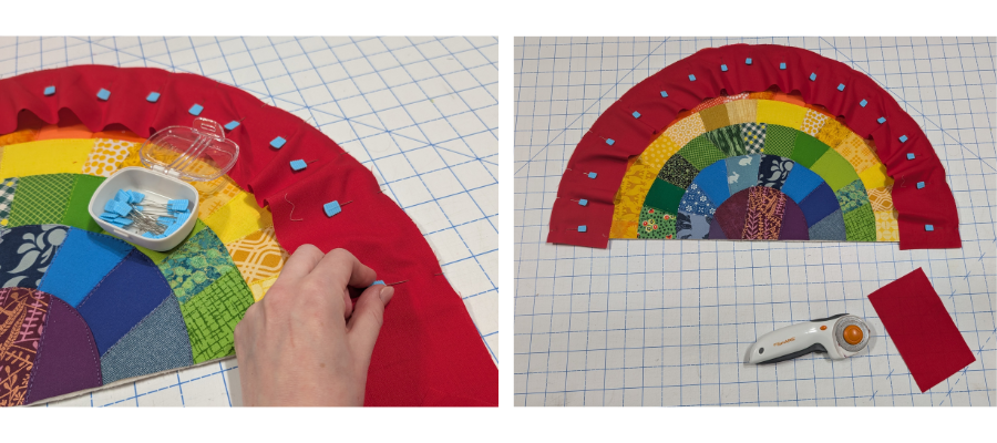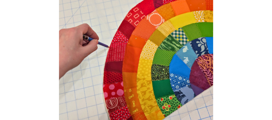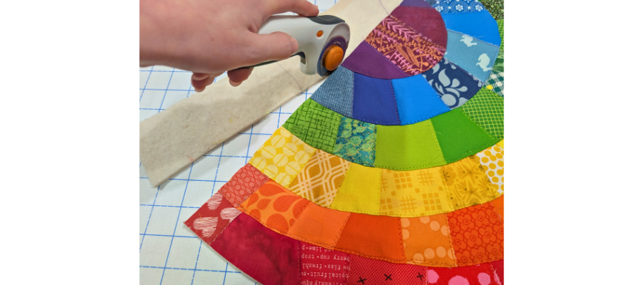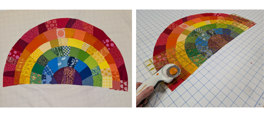 Once quilted, trim away backing and batting flush with the edge of the rainbow.