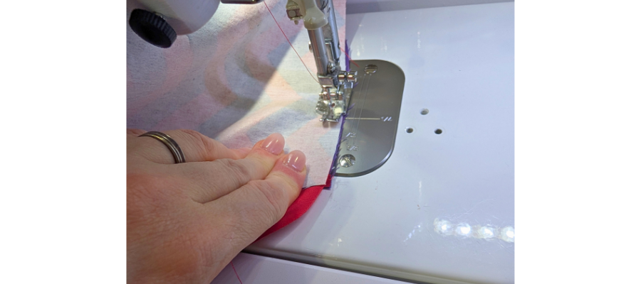 The corners will look mitred for best results – once you get to the corners fold the fabric and sew off the end, then bend the excess the other way to continue sewing the other side of the corner. This will create a small point.
